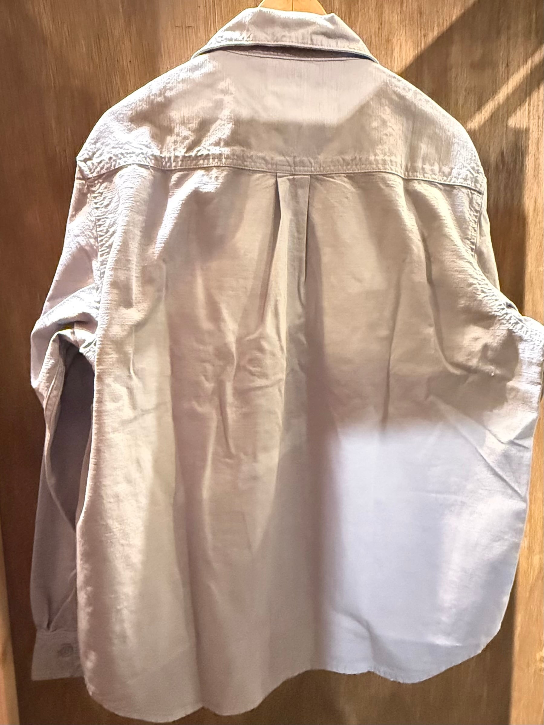 ロングスリーブケルシーシャツは、ミディアムウェイトのコットンキャンバス地を使用し、ゆったりとしたシルエットに仕上げられています。ガーメントダイ加工を施すことで、柔らかな着心地と深みのある色合いを実現しています。フロントはボタン留め仕様で、胸元にはフラップ付きのボタンポケットが2つ付いています。ウーブン製スクエアラベルがデザインを引き立てています。